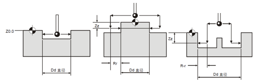 测头深入孔内,多点触碰内壁/外圆